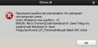 Произошла ошибка при распаковке: Не совпадает контрольная сумма!