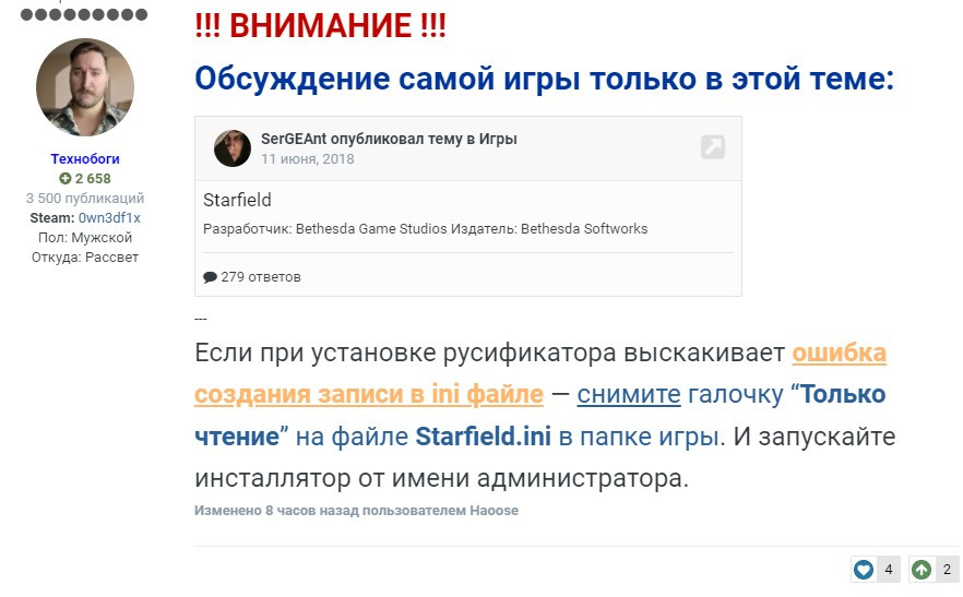 Если русификатор от DeepL, а вы до этого пытались ставить русификатор от яндекса, то после установки язык будет Английским в игре, если открыть starfield.ini в папке с игрой, то строка sLanguage = ru, казалось бы, так почему не работает. А ответ оказывается очень прост.