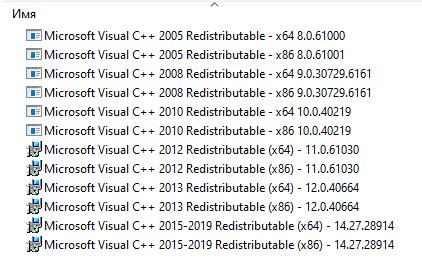 Ошибка VCOMP110.dll или MSVCR120.dll или VCRUNTIME140.dll