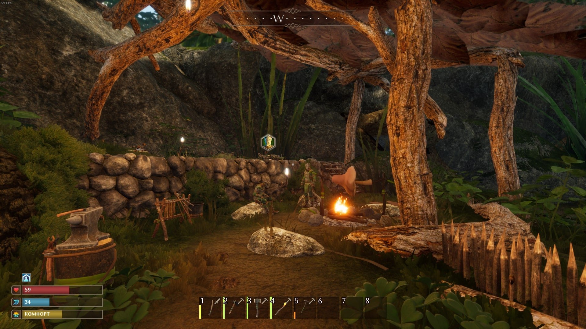 - Стройте убежища. Добывайте и обрабатывайте ресурсы, чтобы укреплять свою базу материалами различного качества – от листьев и веточек до прочного камня. Найдите подходящее местечко на земле или постройте убежище в густой листве деревьев.