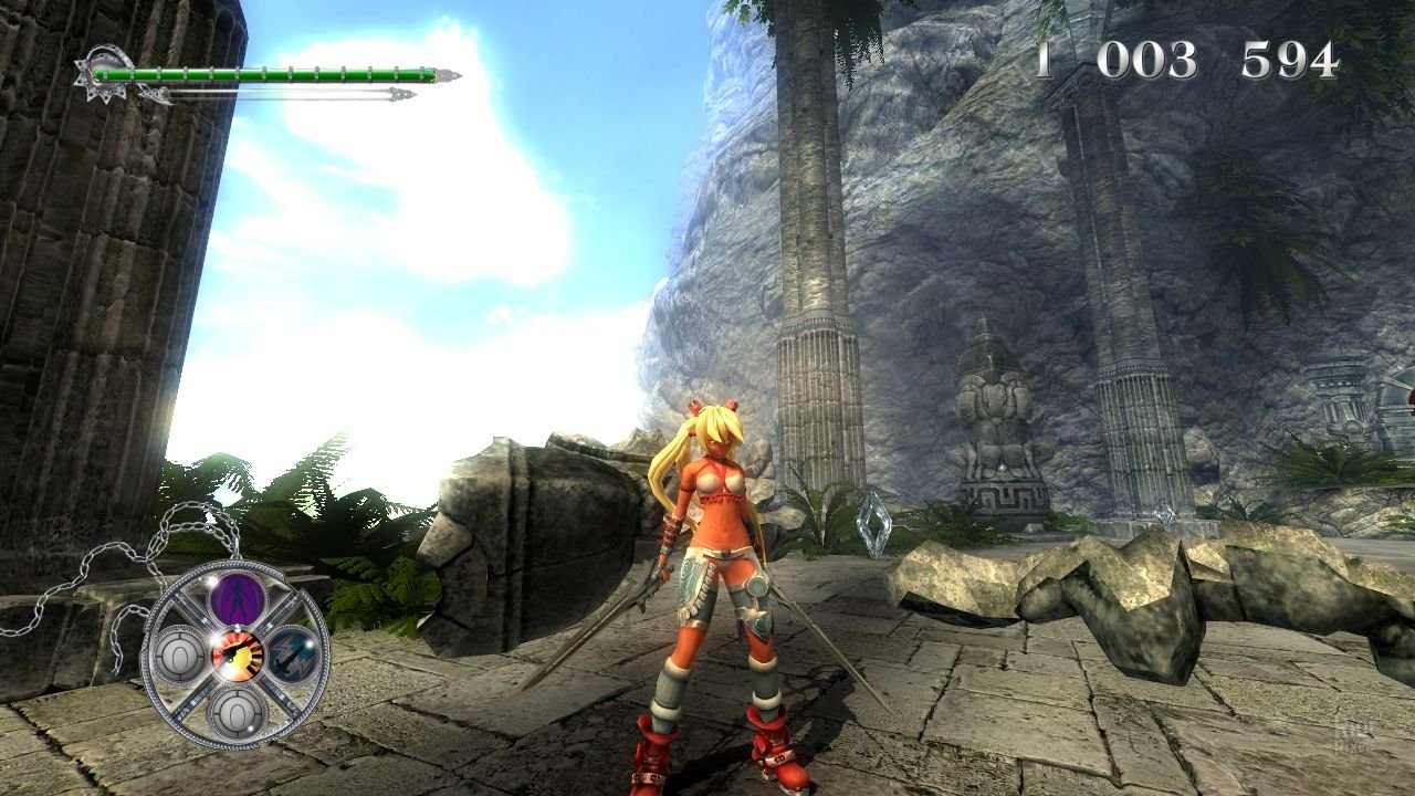 Игрок управляет героиней, охотницей за сокровищами, по прозвищу Ониблэйд (в переизданиях Аюми). Оружием героини являются два ганблэйда, которые могут использоваться как холодное и огнестрельное оружие для ближнего и дальнего боя соответственно.
