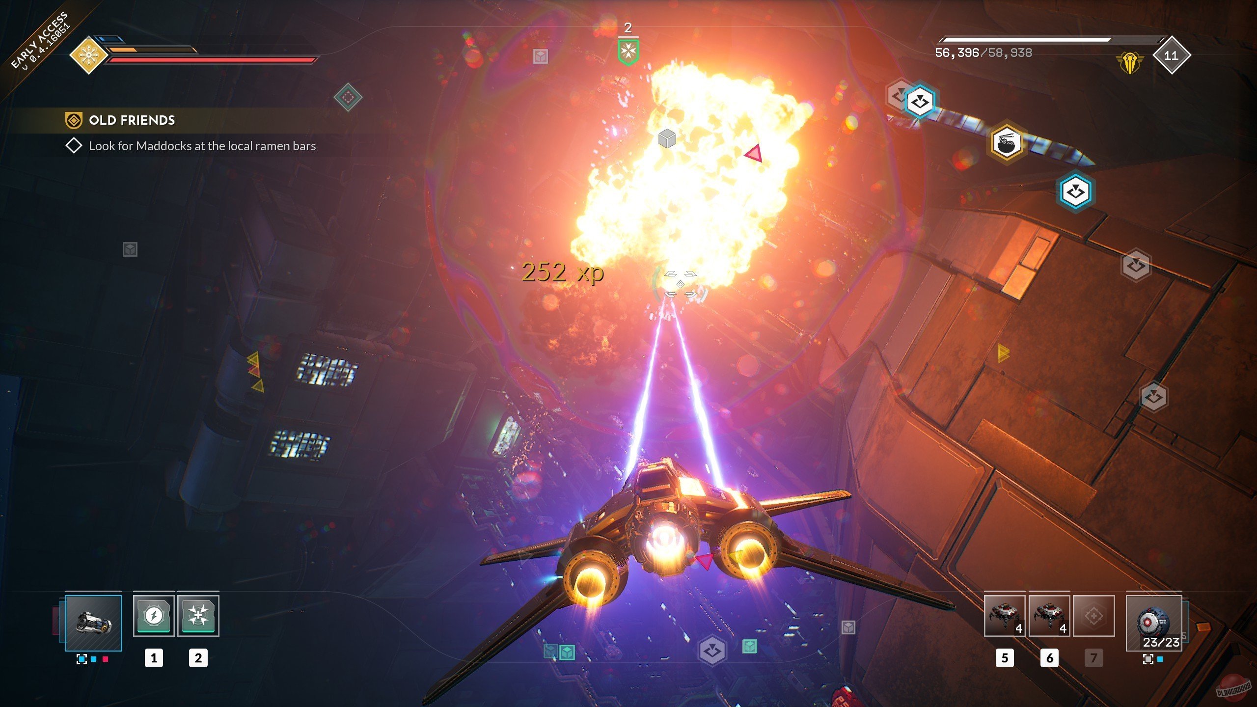 - Отправляйтесь на поиски снаряжения и будьте готовы постоянно улучшать свой корабль. Ищите детали, которые соответствуют вашему стилю игры, но не бойтесь экспериментировать и пробовать что-то новое. Находите взаимосвязи между снаряжением, характеристиками, устройствами и кораблями, чтобы повысить их эффективность до предела.
