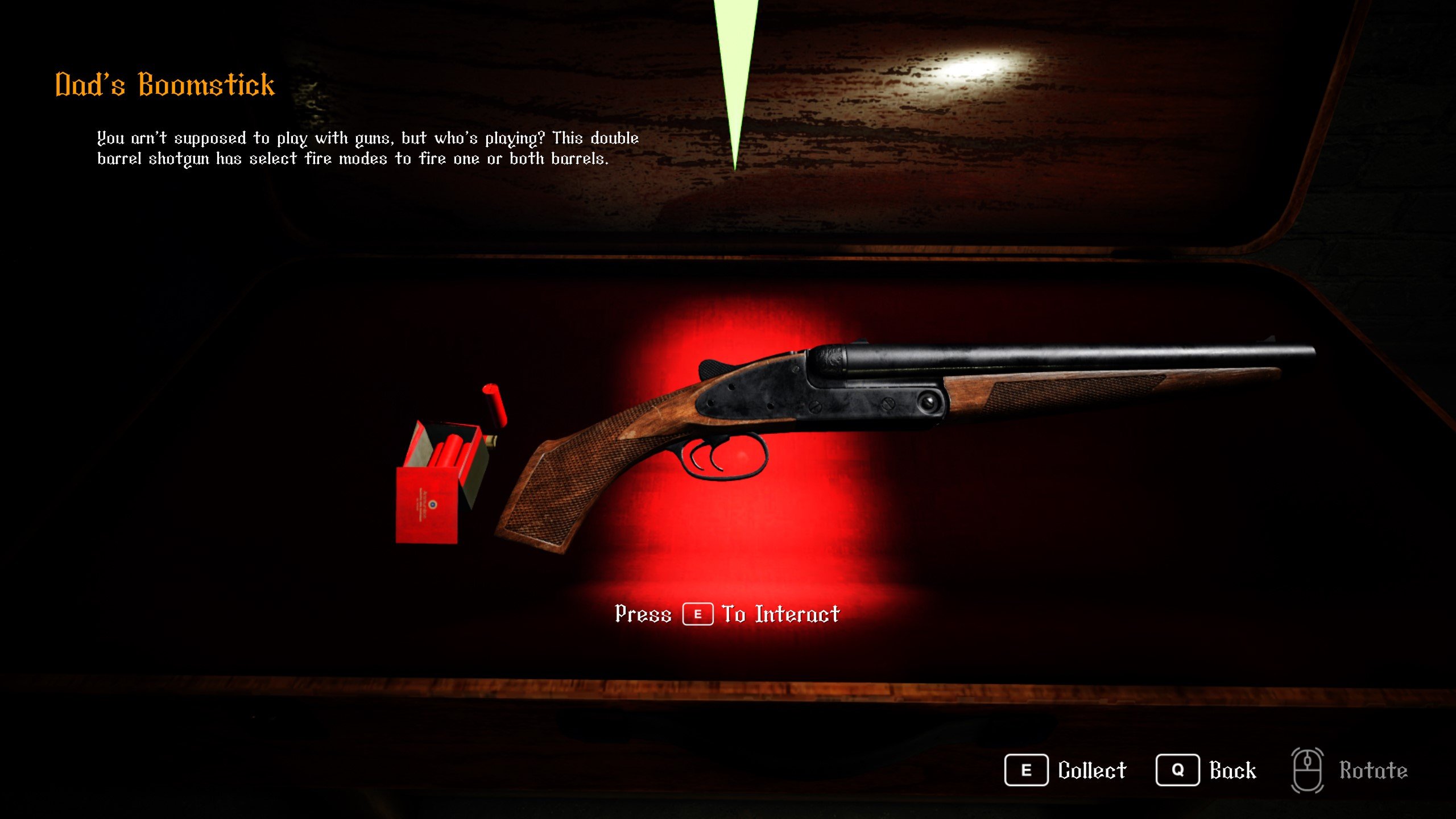 Игра наполнена скримерами, сложными головоломками и ужасающими монстрами, а также скрытыми мемами и шутками, которые заставят игроков смеяться и пугаться. А ещё у Вас есть всё-таки батюшкина двустволка.