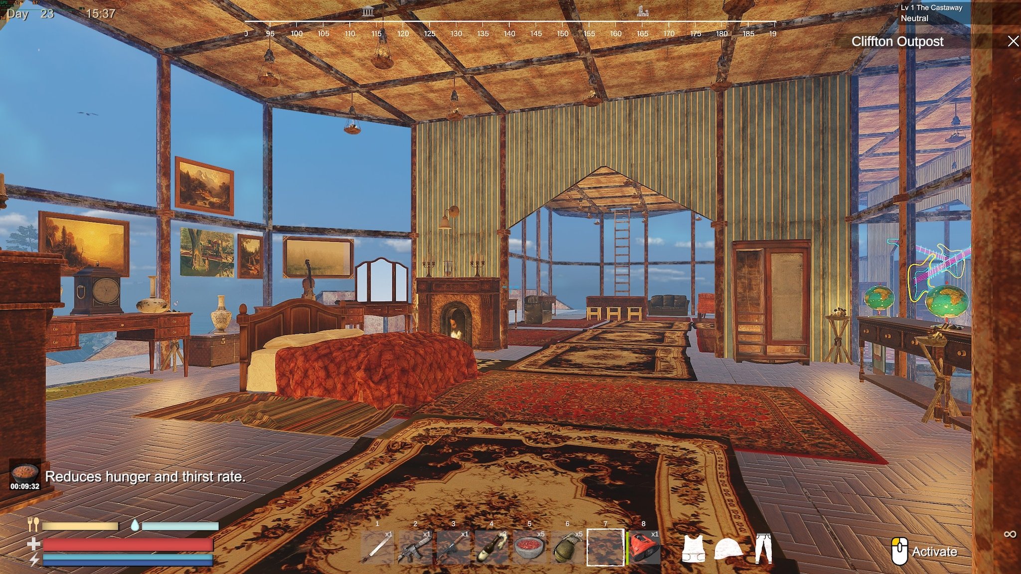 Стройте базу где угодно. Будь то водное укрепление, база на заброшенном корабле или островская квартира. Вам понадобится она, чтобы оставаться освеженным, создавать предметы, заниматься фермерством, хранить вещи и оставаться под защитой. С помощью модульной системы строительства вы можете создать свою идеальную крепость и оформить ее украшениями, найденными во время вашего путешествия.
