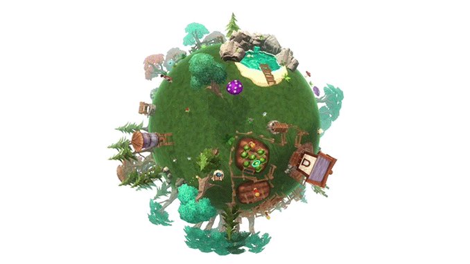 - Сделайте свою планету уникальной: наполните ее деревьями, растениями, цветами и постройками, посейте урожай и ухаживайте за животными.