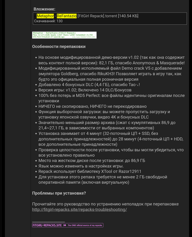 Автор RePack'a: Decepticon
