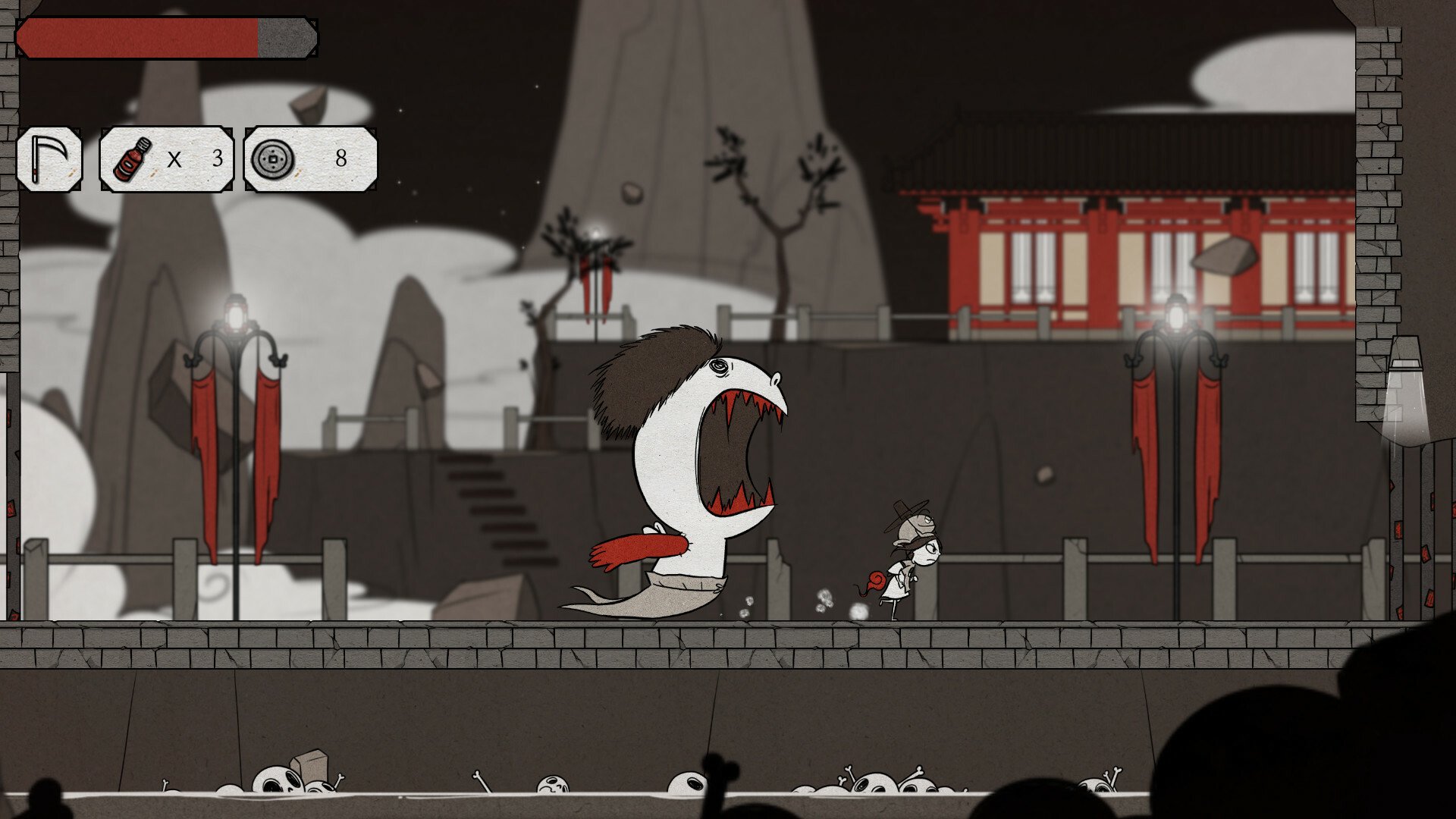 - Уникальные визуальные эффекты: были использованы только три цвета, чтобы вдохнуть жизнь в игру; Красный, черный и белый.