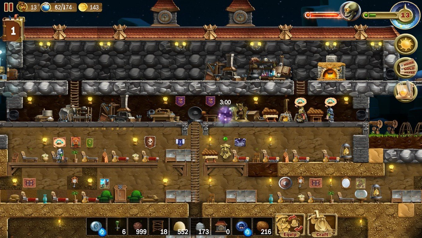 - Стратегия в реальном времени. В самом начале вы получите лишь несколько рецептов: вы сможете создать основные инструменты и предметы, а также построить маленький дом, в котором гномы будут есть и спать. Ваш народ будет расти, и рано или поздно на него обратят внимание другие обитатели острова. Большинство населяющих его созданий живут под землей. Готовьтесь к встрече с зомби, скелетами, гоблинами, созерцателями, призраками, огромными пауками и с другими чудесными созданиями. Некоторые соседи не обратят на гномов никакого внимания, пока те не попадутся им на глаза. Другие же сами соберутся в стаю и попытаются прорваться в гномскую крепость.