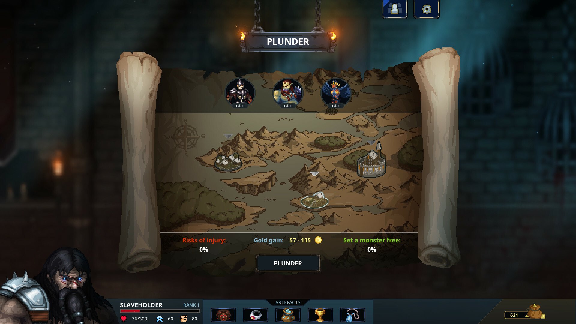 Фаза подземелья. Сперва нужно спланировать, как отвадить залетных искателей приключений. Выясните их характеристики и выставьте против них наиболее подходящих монстров и самые эффективные ловушки. Когда вам покажется, что подземелье готово, можно начинать. Дальше просто смотрите, как герои погибают. Это RPG наоборот — они будут исследовать ходы и натыкаться на ваши ловушки. Когда отряд повстречает выставленных вами монстров, начнется пошаговый бой.
