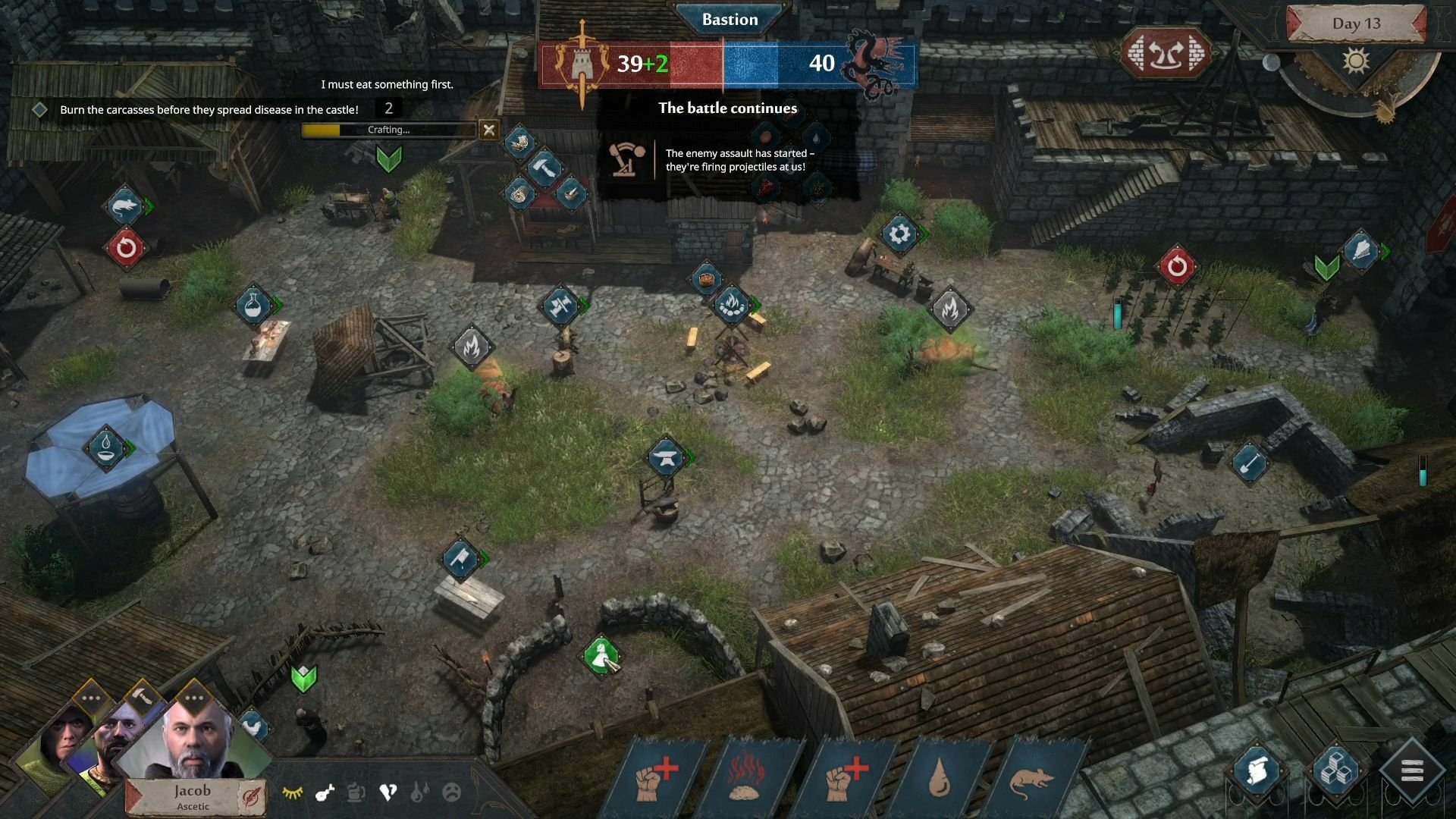 Ваш город почти пал, но его все еще защищает горстка смельчаков, которым срочно требуются стрелы, оружие и доспехи, а также лечение. Ваша задача — следить, чтобы последние защитники ни в чём не нуждались, и помогать им между сражениями, которые происходят каждые несколько дней. Если вы не справитесь со своей задачей, враг рано или поздно возьмёт вашу цитадель. И, как будто этого мало, вам также придётся защищать мирных жителей и свой лагерь от ливня горящих стрел и огромных булыжников.РАСПРЕДЕЛЯЙТЕ РЕСУРСЫ И СОЗДАВАЙТЕ ПРИПАСЫ