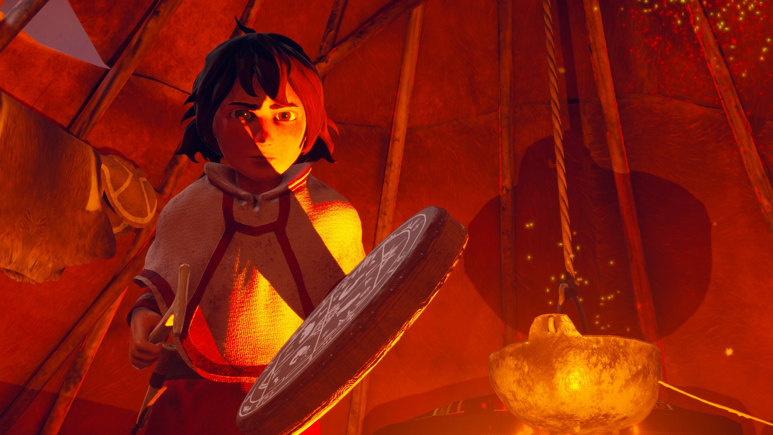- Используйте свой барабан и силы Духов-помощников, чтобы открывать незримые элементы на просторах природы Арктики. Идите по следам, ведущим к предметам и духам людей и деревьев, которые помогут вам преодолеть препятствия и решить загадки окружения.