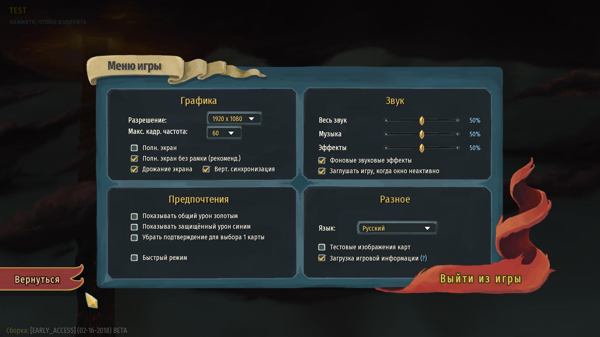 - Играть. Все настройки в меню.
