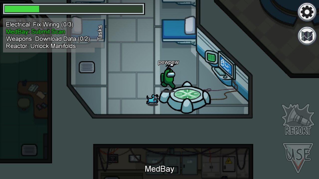 THE CREWMATE: Если же Вы являетесь мирным членом экипажа, то должны быть осторожней! Это игра на доверие. Если знаете, кто предатель, бегите к главной комнате и жмите на кнопку. Если нашли тело, нажмите на «Report» и сообщите о нём всем. После того, как нажмете на кнопку, или сообщите о трупе, будет проходить экстренное собрание. На собрании можно обсудить, кто является предателем и предоставить свои варианты.