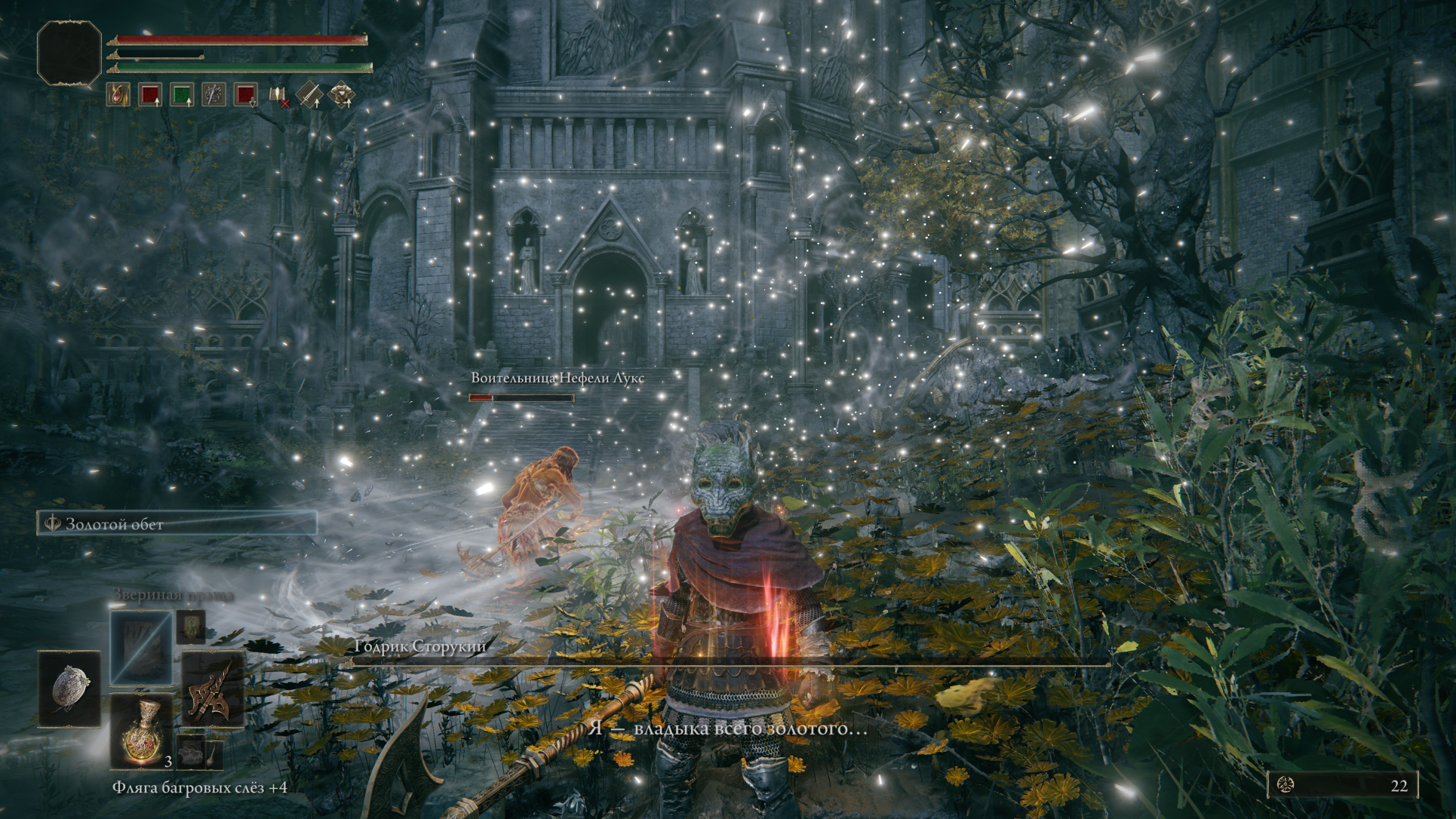Восстань, погасшая душа! Междуземье ждёт своего повелителя. Пусть благодать приведёт тебя к Кольцу Элден.
