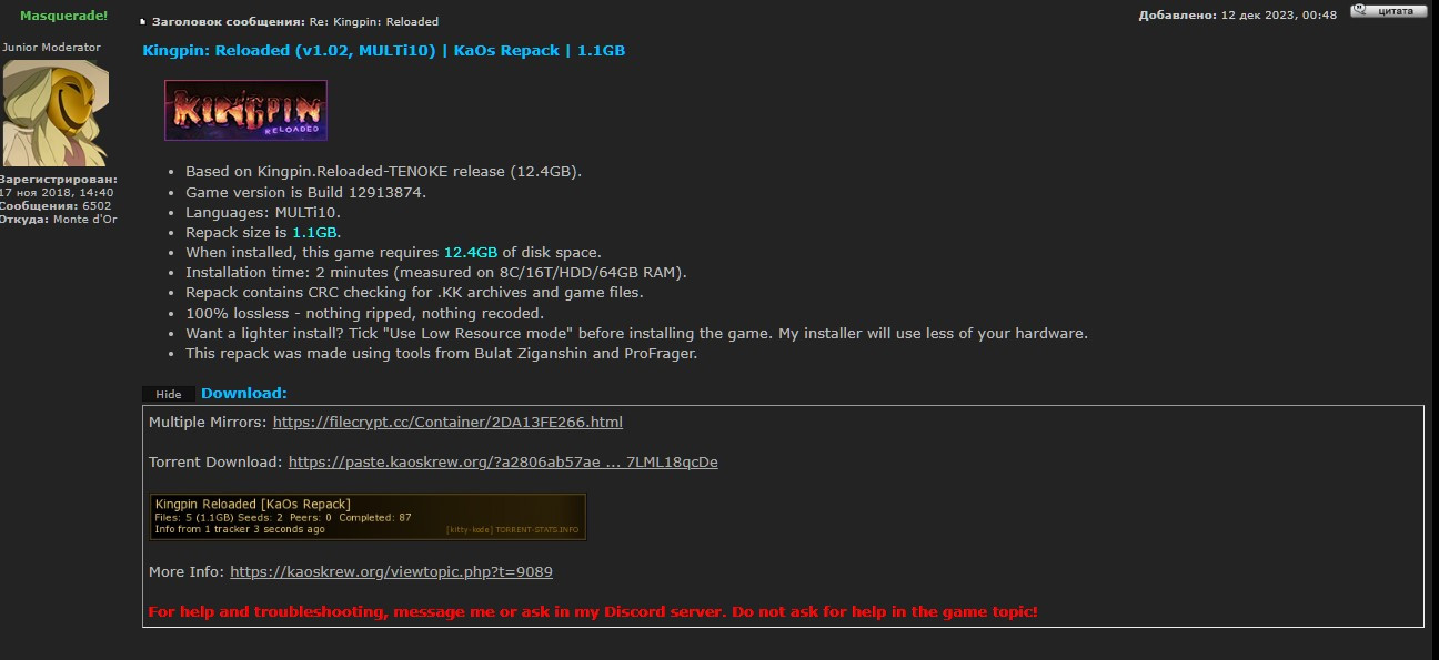 Вас ждет мир прошлого, которого никогда не было, в мрачном сеттинге ар деко. В этом мире правят гангстеры и их жестокий главарь по кличке Братан. Однажды его помощник Никки Бланко избил рядового бандита, безвестного и никому не нужного. Поднявшись из лужи крови и сжимая кусок трубы, герой решил отомстить обидчикам...Kingpin: Reloaded возрождает классический движок Quake II Engine в новом виде. Зловещий мегаполис с любовью прорисован художниками, а благодаря разрешению 4K и улучшенной графике он предстал в новом свете. С поддержкой контроллера исследовать закоулки «города грехов» стало проще и интересней. Также в Reloaded доработали систему квестов и переписали диалоги — игра стала гораздо лучше оригинала.