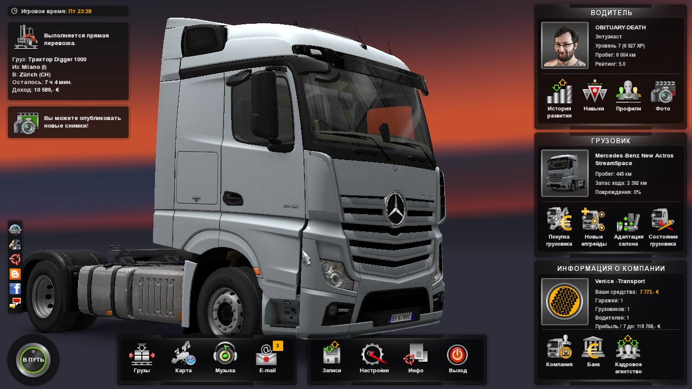 The Euro Truck Simulator 2 дарит вам опыт управления самыми мощными машинами, когда-либо появлявшимися на шоссейных магистралях и автобанах Европы. Вы сможете пройти весь путь - от энтузиаста-дальнобойщика, до обладателя собственной транспортной империи. Настраивайте грузовики с нуля, максимально расширяйте свой автопарк, наймите водителей, купите гараж в каждом городе и исследуйте каждую дорогу - и это только часть доступных возможностей. - Перед вами вся Европа - от Великобритании до Польши.