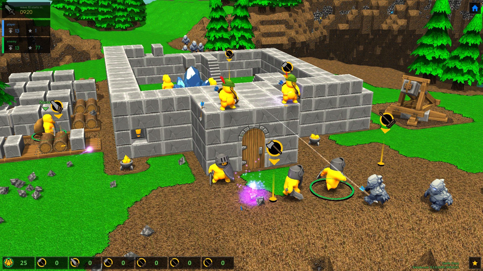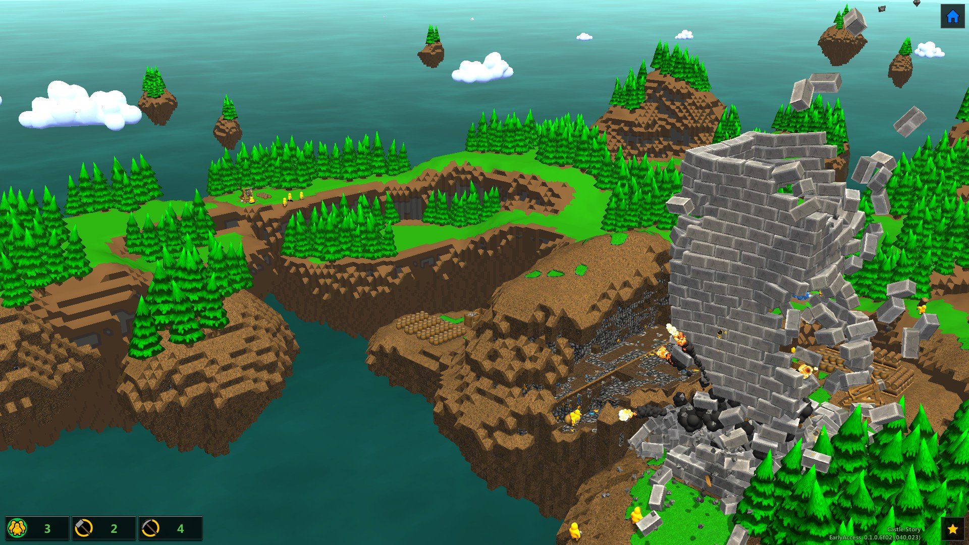 Компьютерная игра Castle Story представлена в воксельном стиле, и по жанру относится к стратегиям-песочницам. Режим выживания предлагает пользователям главных героев в виде смешных существ желтого цвета, которые называются бриктроны. У них есть свой замок, на который положили глаз противники-корруптроны. Геймеры смогут ощутить себя в роли архитектора, а также взять обязанности военачальника. Вы должны будете делать все, чтобы крепость имела прочные и надежные стены, могла выдерживать атаки нападающих, но и одновременно давала возможность вашим воинам использовать свои тактические навыки. Обе воюющие стороны имеют на своем вооружении разное оружие. В арсенале есть меч, лук, щит, катапульта, и многое другое, что в придачу подкрепляется магическими способностями.