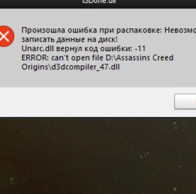 unarc.dll вернул код ошибки:-11